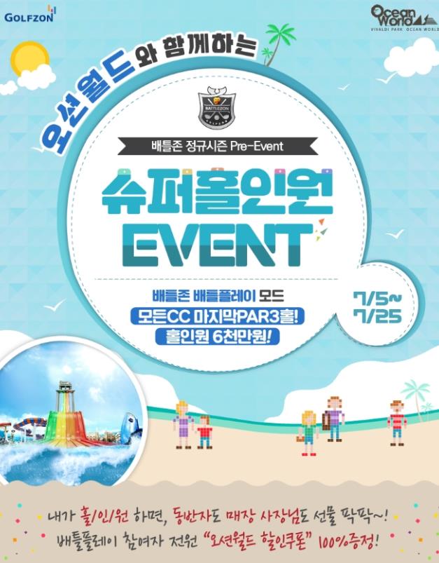 대명리조트의 물놀이 시설인 오션월드와 함께하는 이번 이벤트는 전국 골프존 비전플러스 설치 매장 대상으로 열리며, 배틀존-배틀플레이 모드(조인플레이 참여 불가)로 참여할 수 있다.