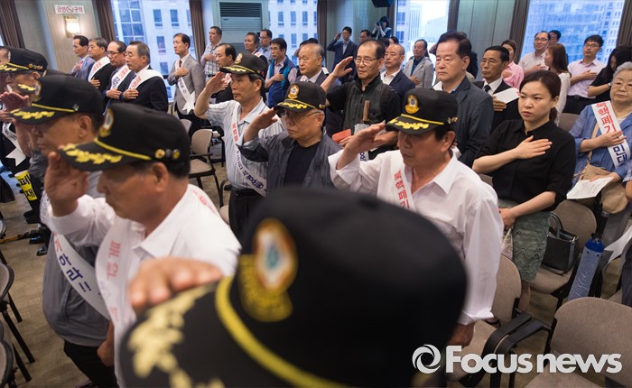 | △ 국민의례하는 북핵폐기천만인서명운동본부 관계자들 |