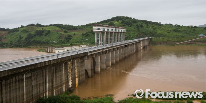 (연천=포커스뉴스) 태풍 네파탁이 북상하고 전국 곳곳에 호우주의보와 경보가 내린 5일 오전 경기도 연천군 군남홍수조절지에서 한국수자원공사가 수위조절을 위해 임진강 강물을 방류하고 있다.