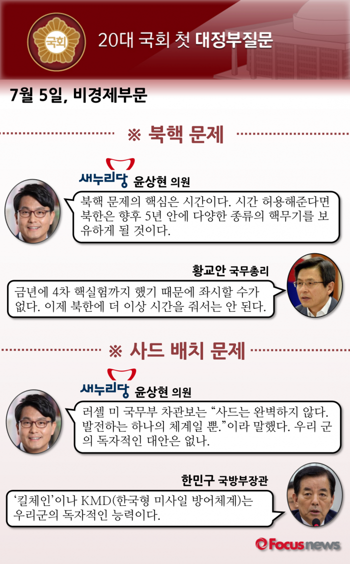 다음은 새누리당 윤상현 의원과 황교안 국무총리·한민구 국방부장관의 질의응답 내용이다.