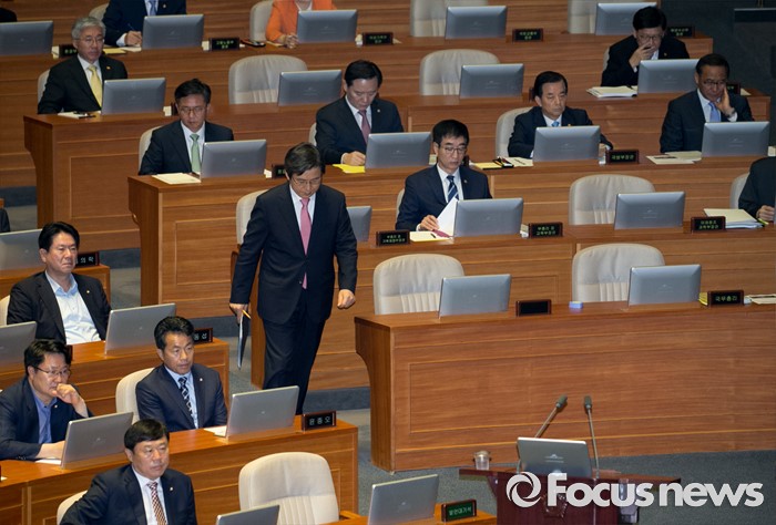(서울=포커스뉴스) 5일 오전 서울 여의도 국회에서 열린 343회 국회(임시회) 7차 본회의, 정치·외교·통일·안보·교육·사회·문화에 관한 질문에 참석한 황교안 국무총리가 의원들의 질문에 답하기 위해 이동하고 있다.