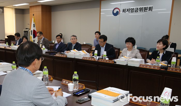 (세종=포커스뉴스) 5일 오후 세종시 정부세종청사 고용노동부 최저임금위원회에서 열린 제9차 전원회에서 박준성 위원장이 회의를 주재하고 있다.
