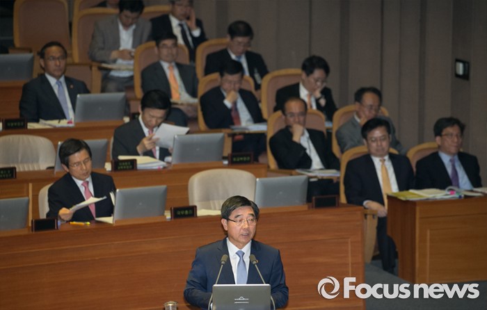 (서울=포커스뉴스) 5일 오후 서울 여의도 국회에서 열린 343회 국회(임시회) 7차 본회의, 정치·외교·통일·안보·교육·사회·문화에 관한 질문에 참석한 이기권 고용노동부 장관이 박덕흠 새누리당 의원의 질문에 답하고 있다.
