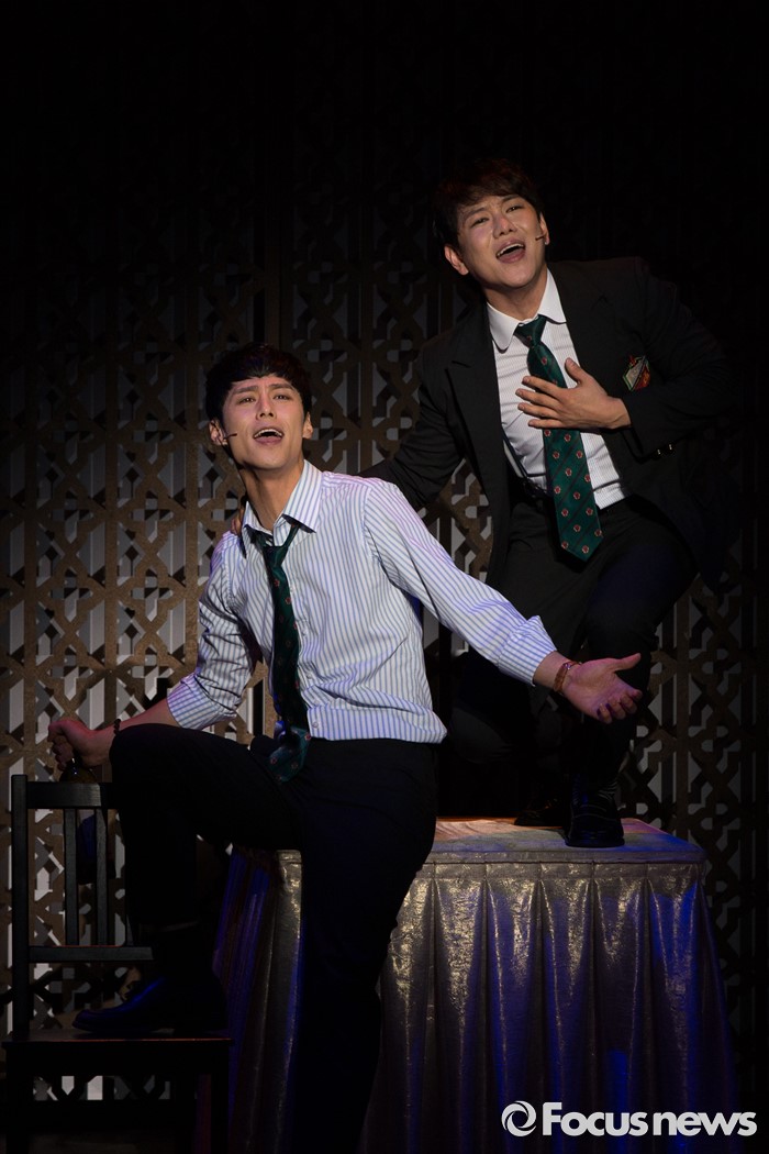 (서울=포커스뉴스) 5일 오후 서울 종로구 두산아트센터에서 열린 베어 더 뮤지컬 프레스콜에 참석한 배우들이 공연 하이라이트 시연을 하고 있다.
