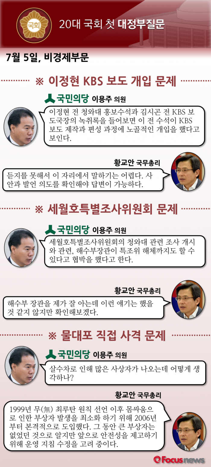 다음은 국민의당 이용주 의원과 황교안 국무총리의 질의응답 내용이다.