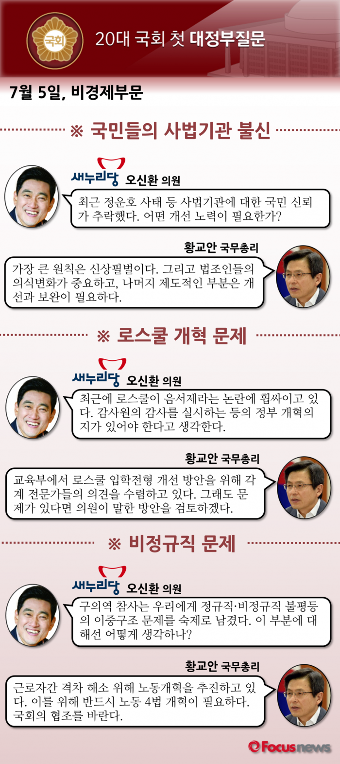 다음은 새누리당 오신환 의원과 황교안 국무총리의 질의응답 내용이다.