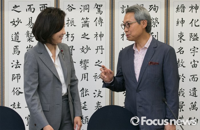 (서울=포커스뉴스) 6일 오전 서울 여의도 국회 귀빈식당에서 열린 미래인사포럼 창립총회에 참석한 나경원(왼쪽) 새누리당 의원과 이근면 전 인사혁신처장이 대화하고 있다.