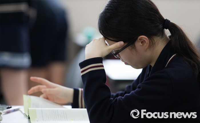 (서울=포커스뉴스) 6일 오전 서울 은평구 신도고등학교에서 한 3학년 학생이 2016학년도 7월 전국연합학력평가를 준비하고 있다.