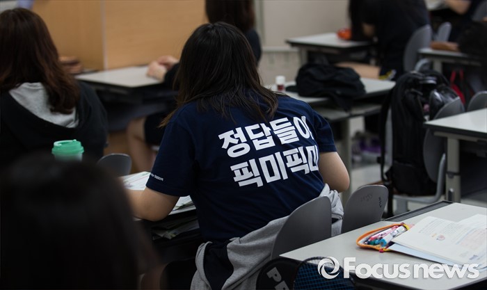 (서울=포커스뉴스) 6일 오전 서울 은평구 신도고등학교에서 3학년 학생들이 2016학년도 7월 전국연합학력평가를 준비하고 있다.