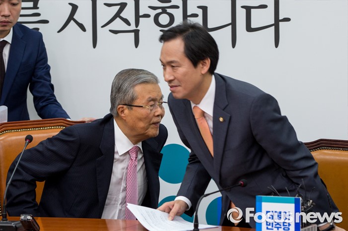 (서울=포커스뉴스) 김종인(왼쪽) 더불어민주당 비상대책위 대표와 우상호 원내대표가 6일 오전 서울 여의도 국회에서 열린 비상대책위원회의를 마친 뒤 회의실을 나서고 있다.