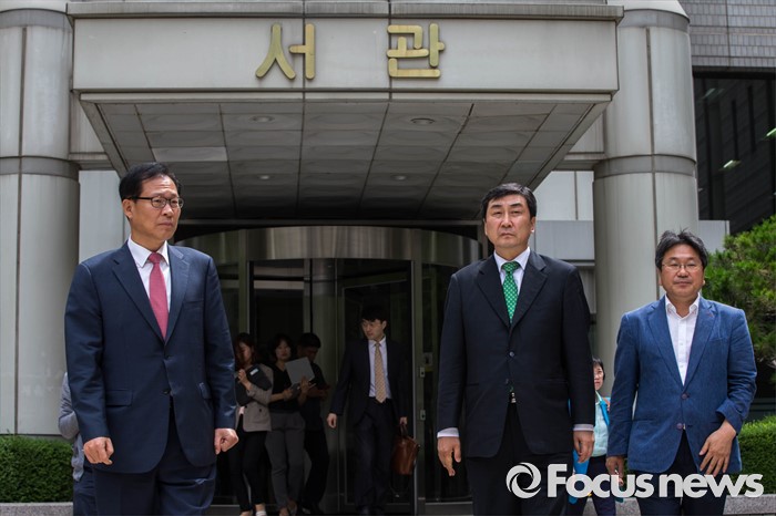 (서울=포커스뉴스) 2012년 대선을 앞두고 발생한 '국정원 여직원 감금 사건' 재판 선고가 내려진 6일 오전 서울 서초구 서울중앙지법 앞에서 이종걸 더불어민주당 의원이 재판 선고 후 법원을 나서고 있다.