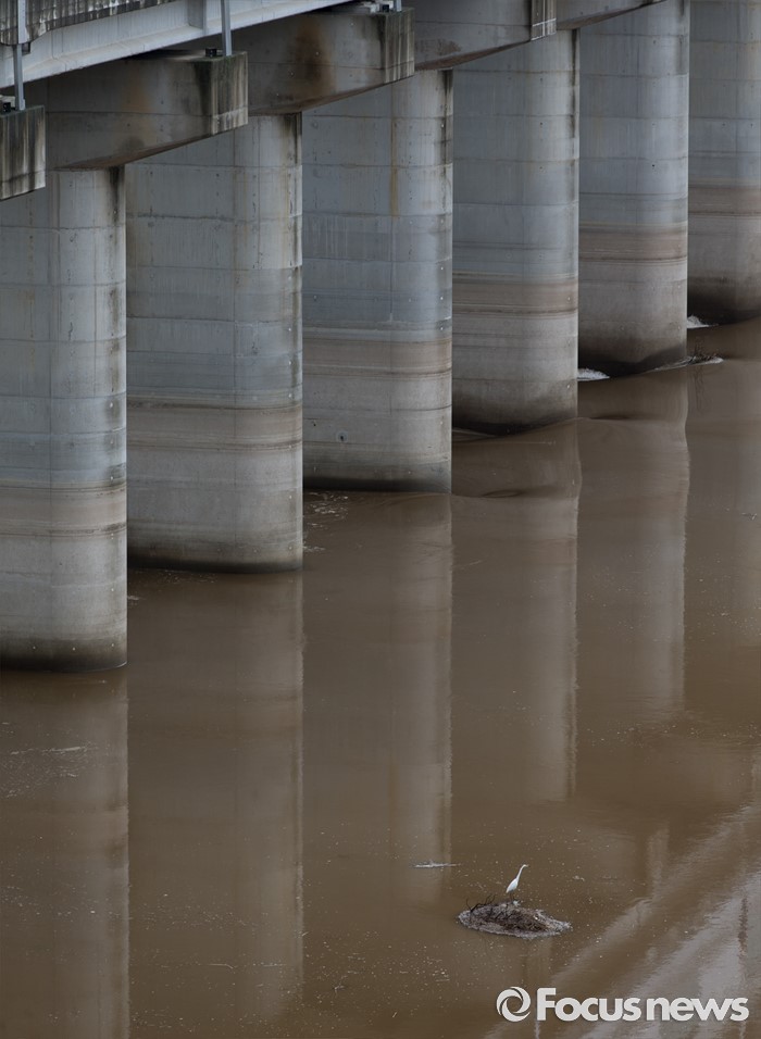 (연천=포커스뉴스) 북한이 황강댐을 방류한 6일 오전 경기도 연천군 군남홍수조절지에서 한국수자원공사가 수위조절을 위해 임진강 강물을 방류하고 있다.