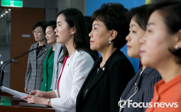 (서울=포커스뉴스) 6일 오전 서울 여의도 국회 정론관에서 신보라 의원 등 새누리당 여성 의원들이 표창원 더불어민주당 의원의 대정부 질문 중 학교전담경찰관 발언 논란과 관련 사과 촉구 기자회견을 하고 있다.