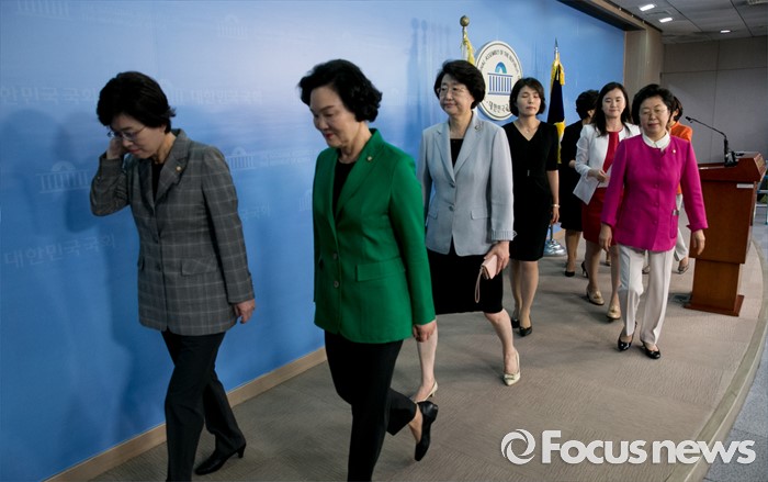 | △ 기자회견 마친 새누리당 여성 의원들 |