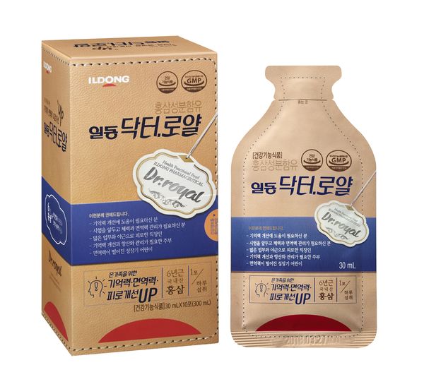 ‘일동닥터로얄’은 국내산 6년근 홍삼을 사용한 홍삼농축액 제품으로, 면역력 증진, 기억력 개선, 피로 개선, 항산화, 혈소판 응집 억제를 통한 혈액흐름 등에 도움을 줄 수 있다.