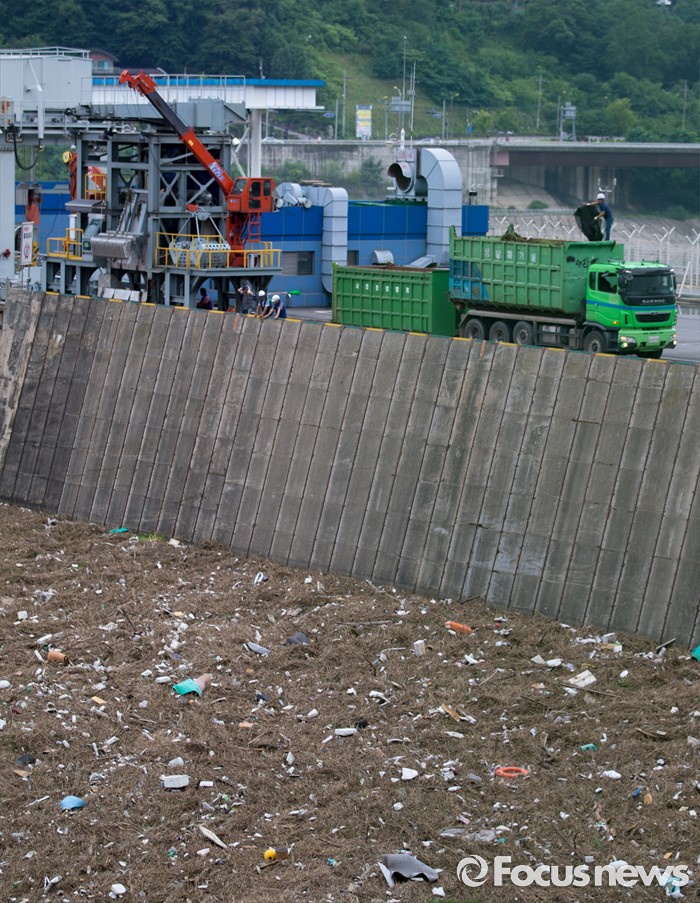 (남양주=포커스뉴스) 서울과 수도권 지역의 장마전선이 소강상태를 보이고 있는 6일 오전 경기도 남양주 팔당댐에 많은 부유물들이 떠내려와 있다.