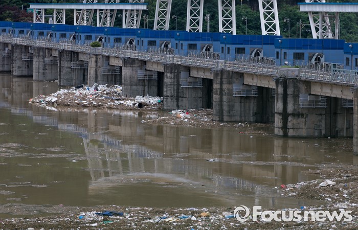 (남양주=포커스뉴스) 서울과 수도권 지역의 장마전선이 소강상태를 보이고 있는 6일 오전 경기도 남양주 팔당댐에 많은 부유물들이 떠내려와 있다.