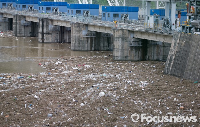 (남양주=포커스뉴스) 서울과 수도권 지역의 장마전선이 소강상태를 보이고 있는 6일 오전 경기도 남양주 팔당댐에 많은 부유물들이 떠내려와 있다.