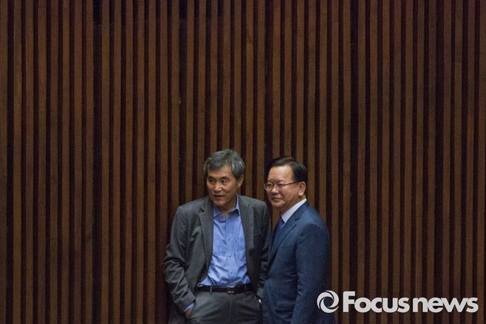 (서울=포커스뉴스) 김부겸(오른쪽) 더불어민주당 의원과 이상돈 국민의당 의원이 6일 오후 서울 여의도 국회에서 열린 '제343회 국회(임시회) 제8차 본회의'에 참석해 대화 하고 있다.