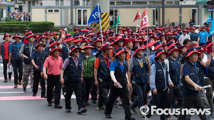 (서울=포커스뉴스) 전국건설노동조합 조합원들이 6일 오후 서울역광장에서 총파업 집회에 앞서 건설사 직접 시공제 도입 등 18대 대정부 요구안 제시를 촉구하며 가두행진을 하고 있다.