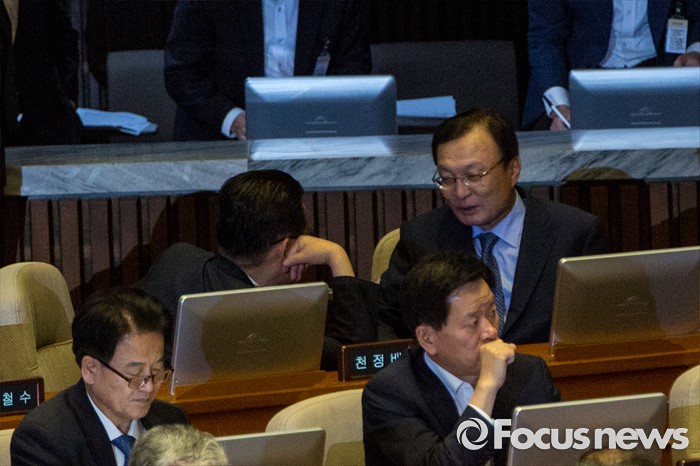 (서울=포커스뉴스) 박지원(왼쪽) 국민의당 비상대책위원장과 이해찬(오른쪽) 무소속 의원이 6일 오후 서울 여의도 국회에서 열린 '제343회 국회(임시회) 제8차 본회의'에 참석해 대화 하고 있다.