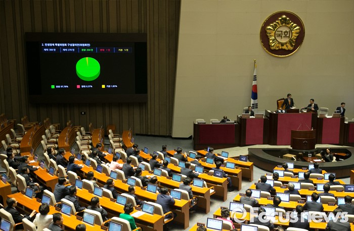 (서울=포커스뉴스) 6일 오후 서울 여의도 국회에서 열린 343회 국회(임시회) 8차 본회의에서 민생경제 특별위원회 구성결의안이 재석 270인 중 찬성 264인, 반대 1인, 기권 5인으로 통과되고 있다.