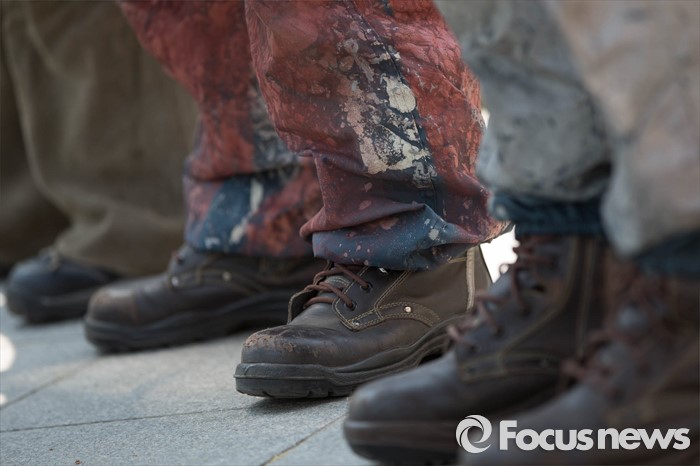 | △ 작업복 차림의 현대중공업노조원들 |