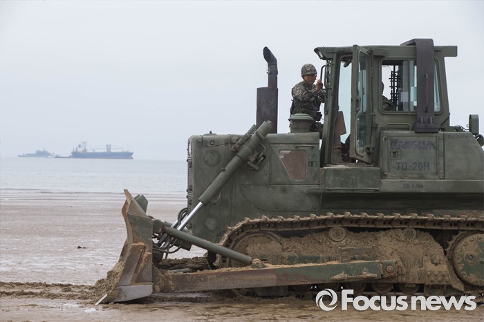 (태안=포커스뉴스) 7일 오전 충청남도 태안군 안면읍 인근 해안에서 2016 합동 해안양륙군수지원(J LOTS) 훈련이 열리고 있다. 합동참모본부 주관으로 해군과 해병대, 육군, 해경이 참가하는 합동 해안양륙군수지원 훈련은 항만 사용이 불가한 지역에서 작전을 수행중인 전투부대에 군수지운을 하기 위한 작전이다.