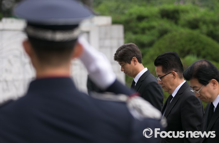 (서울=포커스뉴스) 박지원 국민의당 비상대책위원장과 비대위원 등이 7일 오전 동작구 국립서울현충원을 방문해 현충탑 참배를 하고 있다.