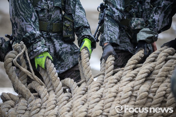 (태안=포커스뉴스) 7일 오전 충청남도 태안군 안면읍 인근 해안에서 2016 합동 해안양륙군수지원(J LOTS) 훈련이 열리고 있다. 합동참모본부 주관으로 해군과 해병대, 육군, 해경이 참가하는 합동 해안양륙군수지원 훈련은 항만 사용이 불가한 지역에서 작전을 수행중인 전투부대에 군수지운을 하기 위한 작전이다.