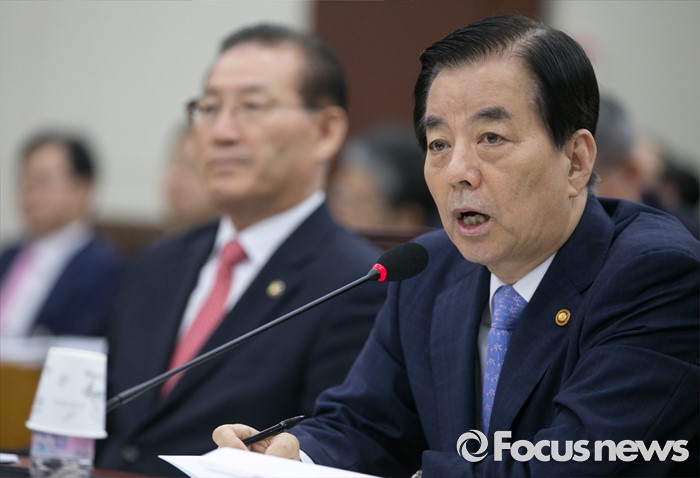 (서울=포커스뉴스) 7일 오전 서울 여의도 국회에서 열린 국방위원회 전체회의에 참석한 한민구 국방부 장관이 의원들의 질의에 답하고 있다.