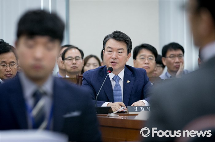 (서울=포커스뉴스) 7일 오전 서울 여의도 국회에서 열린 안전행정위원회 전체회의에 참석한 강신명 경찰청장이 의원들의 질의에 답하고 있다.