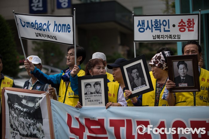 (서울=포커스뉴스) 납북자가족모임과 국군포로가족회 회원들이 7일 오후 서울 서초구 민주사회를위한변호사모임 사무실 앞에서 '납북자들에 대한 인신보호법상 구제 청구' 기자회견을 하고 있다.