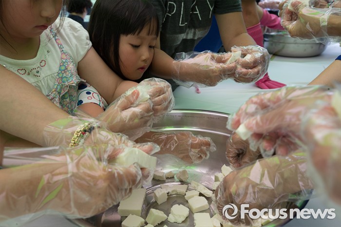 (서울=포커스뉴스) 7일 오후 서울 종로구 청계천 광장에서 열린 '2016 도시 농촌 교류의 날 및 농촌여름휴가 캠페인'에 참석한 시민들이 모짜렐라 치즈 만들기 체험을 하고 있다.