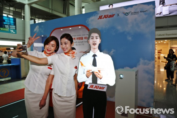 (서울=포커스뉴스) 제주항공은 인천국제공항공사와 함께 인천공항 면세구역에 ‘제주항공 송중기 기장 디지털 마네킹’을 설치해 여행객에게 공개한다고 7일 밝혔다.