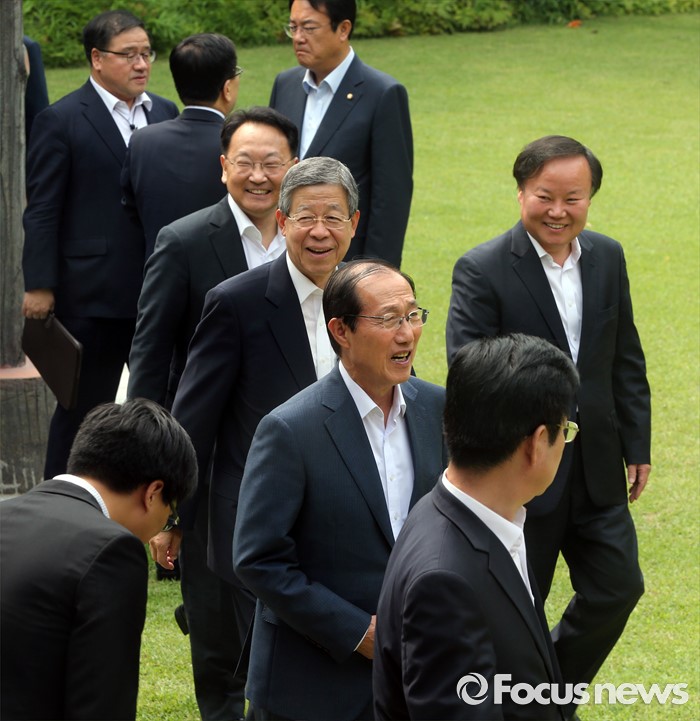 (서울=포커스뉴스) 7일 오후 서울 종로구 삼청동 국무총리공관에서 열린 당·정·청 정책조정협의회에서 이원종 청와대 비서실장, 김희옥 새누리당 비상대책위원회 위원장, 유일호 경제부총리, 김재원 정무수석 등이 회의장으로 향하고 있다.