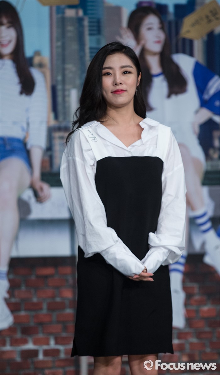 (서울=포커스뉴스) 7일 오후 서울 마포구 MBC상암사옥 골든마우스홀에서 열린 MBC every1 '쇼타임 마마무X여자친구' 제작발표회에 참석한 걸그룹 마마무의 멤버 휘인이 포토타임을 갖고 있다.