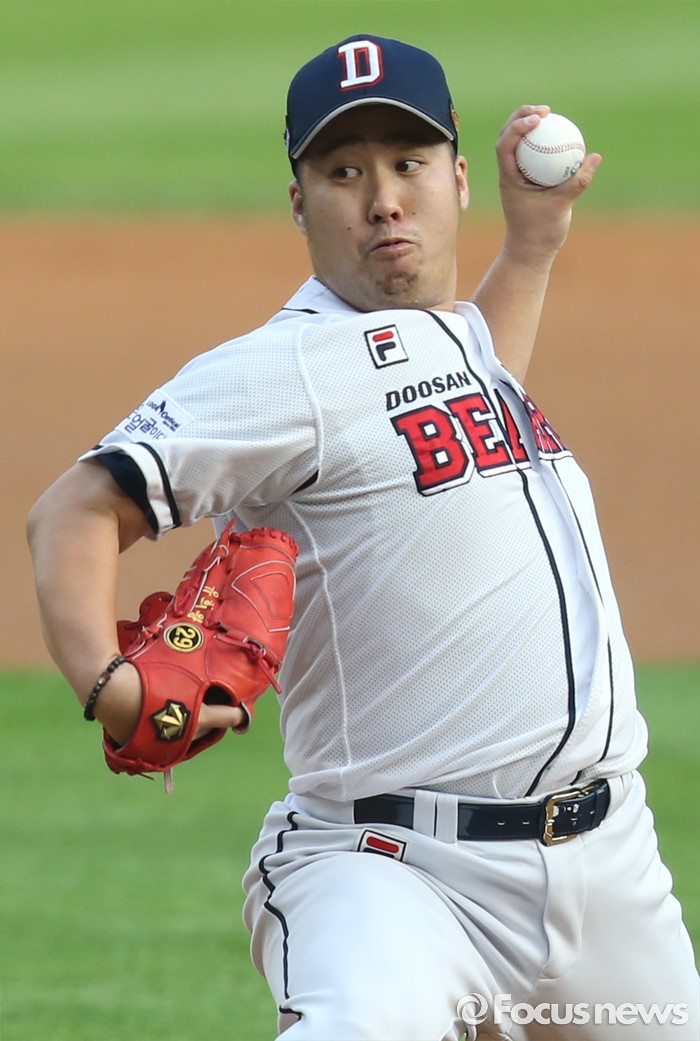 | △ 투구하는 두산 선발 유희관 |