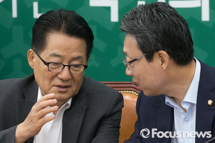 (서울=포커스뉴스) 8일 오전 서울 여의도 국회에서 열린 국민의당 원내대책회의에 참석한 박지원(왼쪽) 비대위원장과 김성식 정책위의장이 대화하고 있다.