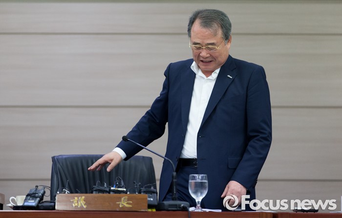 (서울=포커스뉴스) 8일 오전 서울 송파구 올림픽파크텔에서 열린 대한체육회 제4차 긴급 임시 이사회에서 강영중 대한체육회 회장이 자리에 앉고 있다. 이번 임시 이사회에서는 박태환의 리우 올림픽 출전 여부가 긴급 안건으로 상정됐다.