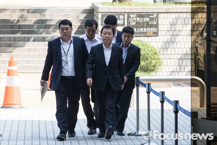 (서울=포커스뉴스) 5조 4천억 원대 회계사기로 대우조선해양 비리 의혹 핵심 인물로 지목된 고재호 전 사장이 8일 오전 서울 서초구 서울중앙지방법원으로 영장실질심사를 받기 위해 들어서고 있다.