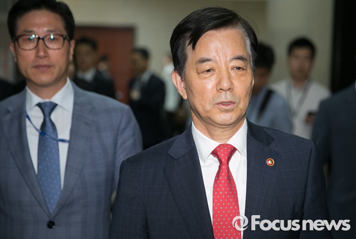 (서울=포커스뉴스) 한민구 국방부 장관이 8일 오전 서울 여의도 국회를 방문해 사드배치 등과 관련 정진석 새누리당 원내대표와 비공개 면담한 뒤 이동하고 있다.
