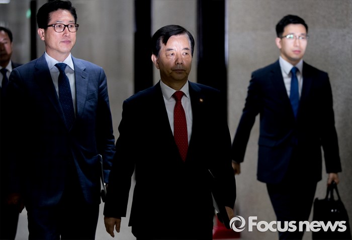 (서울=포커스뉴스) 한민구 국방부 장관이 8일 오전 서울 여의도 국회를 방문해 사드배치 등과 관련 국민의당 지도부와 면담을 마친 뒤 더불어민주당 지도부와 면담을 위해 이동하고 있다.