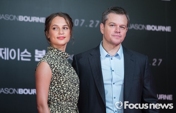 (서울=포커스뉴스) 8일 오전 서울 종로구 포시즌스호텔 서울에서 열린 영화 '제이슨 본' 아시아 프리미어 기자간담회에 참석한 배우 알리시아 비칸데르(왼쪽)와 맷 데이먼이 포토타임을 갖고 있다.