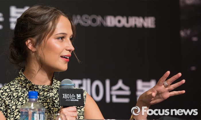 (서울=포커스뉴스) 8일 오전 서울 종로구 포시즌스호텔 서울에서 열린 영화 '제이슨 본' 아시아 프리미어 기자간담회에 참석한 배우 알리시아 비칸데르가 취재진의 질문에 답하고 있다.