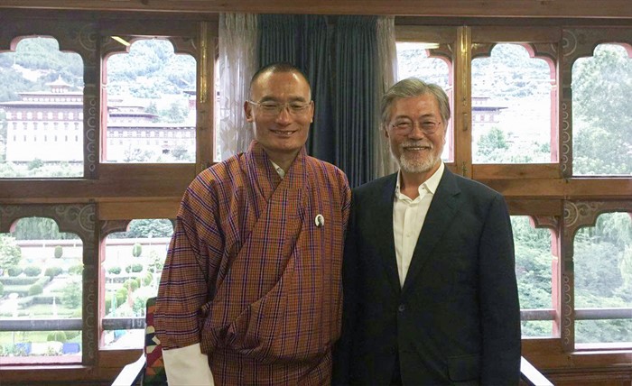 (서울=포커스뉴스) 네팔을 거쳐 부탄을 방문하고 귀국을 앞둔 문재인 더불어민주당 전 대표가 8일 부탄의 정부 수반인 체링 톱게이(Tshering Topgay) 수상과 만나 환담을 나눈 사진과 내용을 자신의 SNS에 공개했다. <사진제공=문재인 전 대표 페이스북>