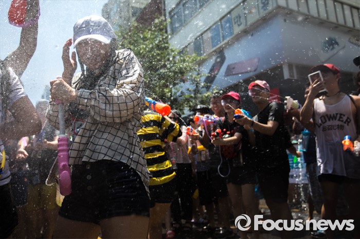 (서울=포커스뉴스) 9일 오후 서울 서대문구 신촌 연세로에서 열린 '2016 물총축제' 에 참가한 시민들이 서로 물총을 쏘며 즐거운 시간을 보내고 있다.