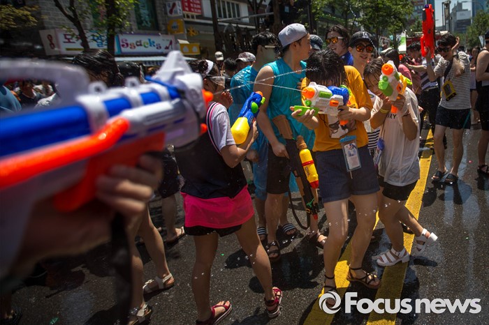 (서울=포커스뉴스) 9일 오후 서울 서대문구 신촌 연세로에서 열린 '2016 물총축제' 에 참가한 시민들이 서로 물총을 쏘며 즐거운 시간을 보내고 있다.