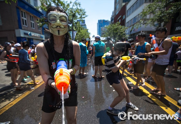 (서울=포커스뉴스) 9일 오후 서울 서대문구 신촌 연세로에서 열린 '2016 물총축제' 에 참가한 시민들이 서로 물총을 쏘며 즐거운 시간을 보내고 있다.