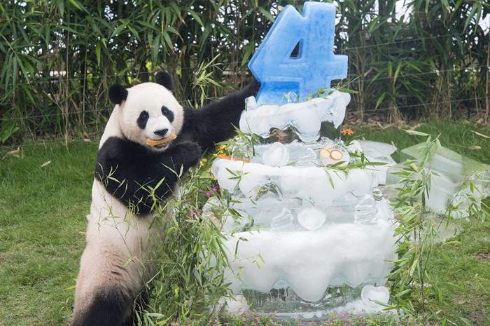 (서울=포커스뉴스) 10일 오전 경기도 용인시 에버랜드에서 판다 러바오(수컷·2012년 7월 28일생)와 아이바오(암컷·2013년 7월 13일생)의 네 번째와 세 번째 생일 잔치가 열렸다. 에버랜드는 오는 28일까지 판다 생일주간으로 지정해 각종 이벤트 행사를 진행한다. <사진제공=에버랜드>